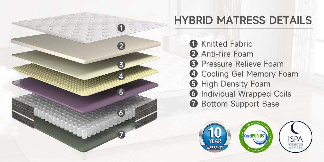 • Hybrid mattresses consist of a core of innerspring coils combined with layers of foam, provides a balance of support and comfortable.