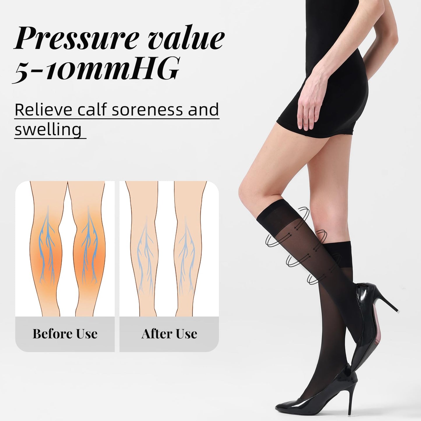 3 Pairs Compression Socks for Women- Opaque Stockings