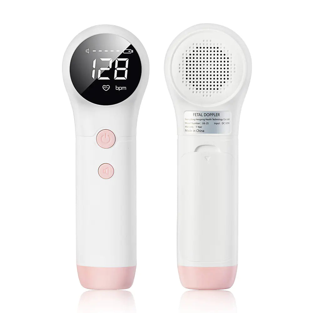 Crafted from durable ABS material and available in two stylish colors - Pink and Gray - this fetal heart monitor seamlessly combines functionality with aesthetics. It is powered by two AA batteries (not included), providing convenience and ease of use without the hassle of cords.