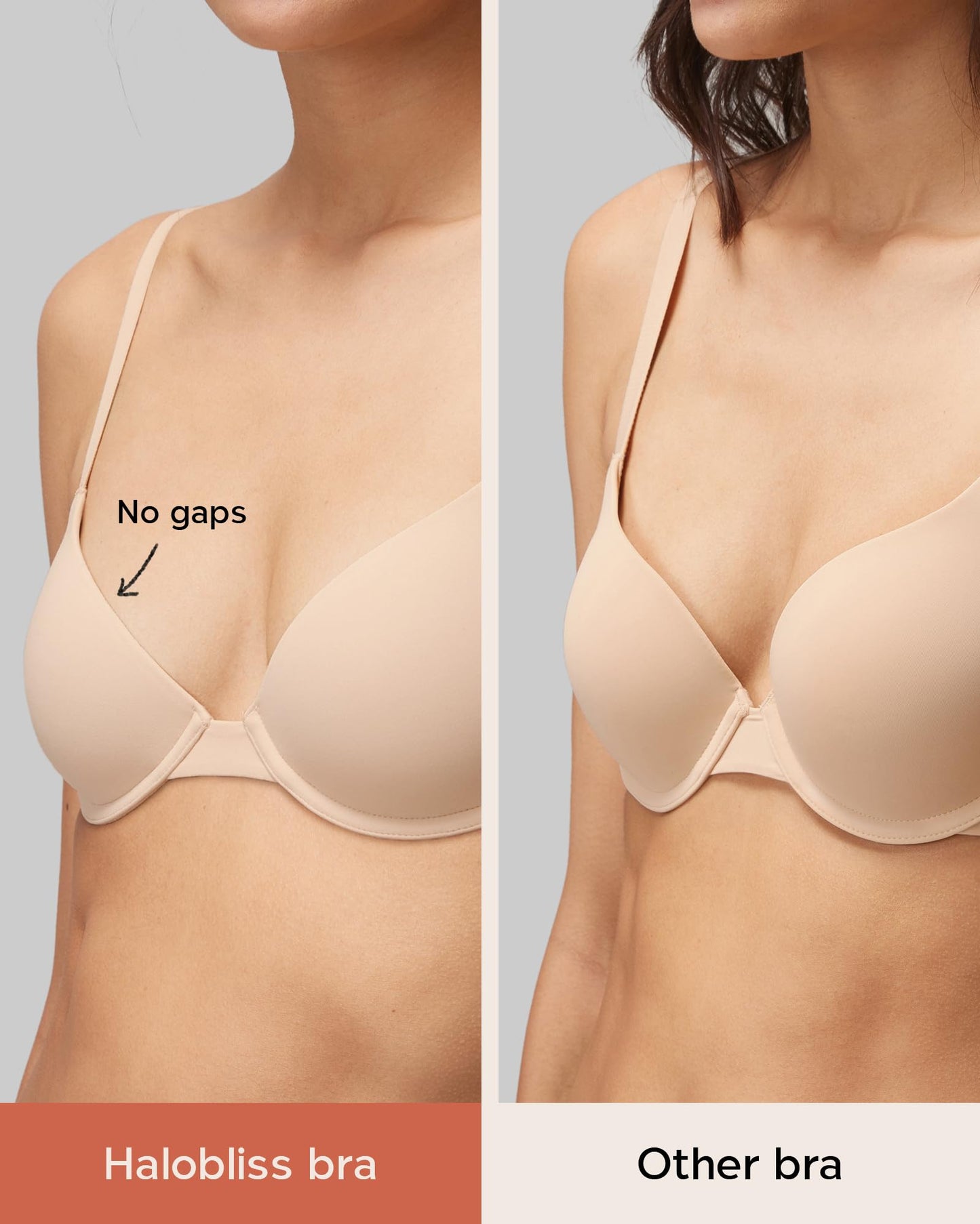 Design for small chested women, available for AAA, AA, A, B sizes. No more bra gaps.