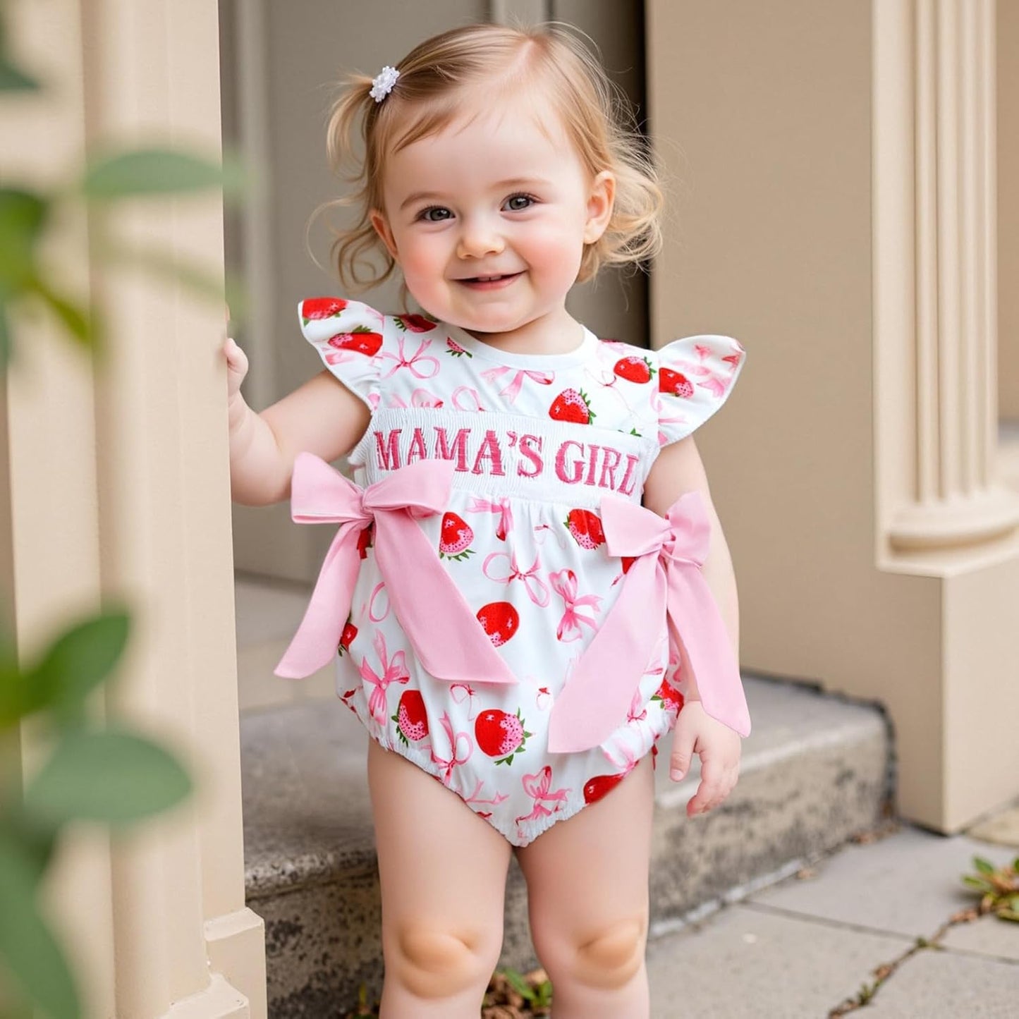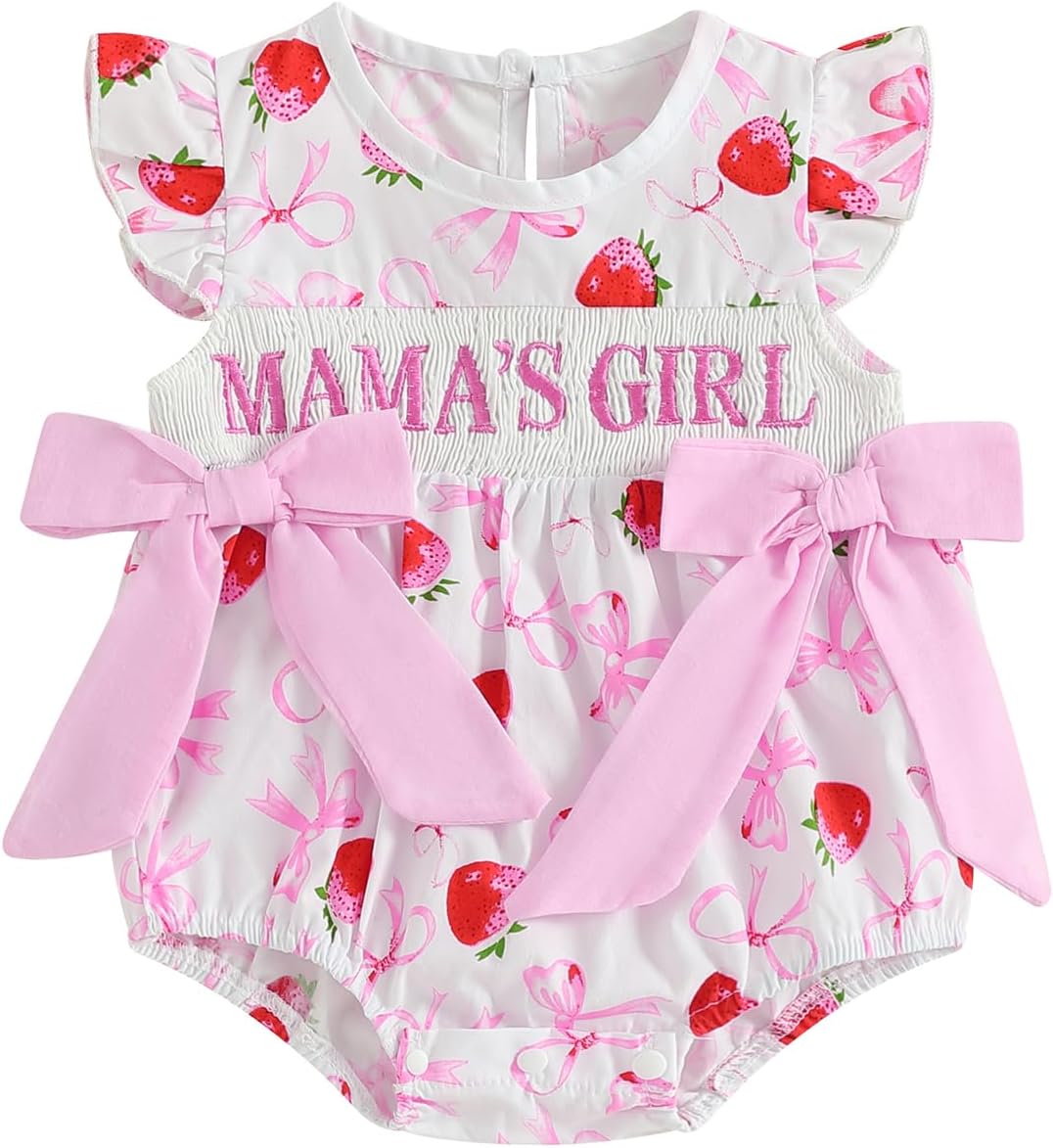 • Feature: newborn infant baby girl mothers day outfit mamas girl sleeveless bubble romper bodysuit jumpsuit onesie my first mothers day summer clothes,the little bows on the sides that give a little extra to mamas girl newborn outfit