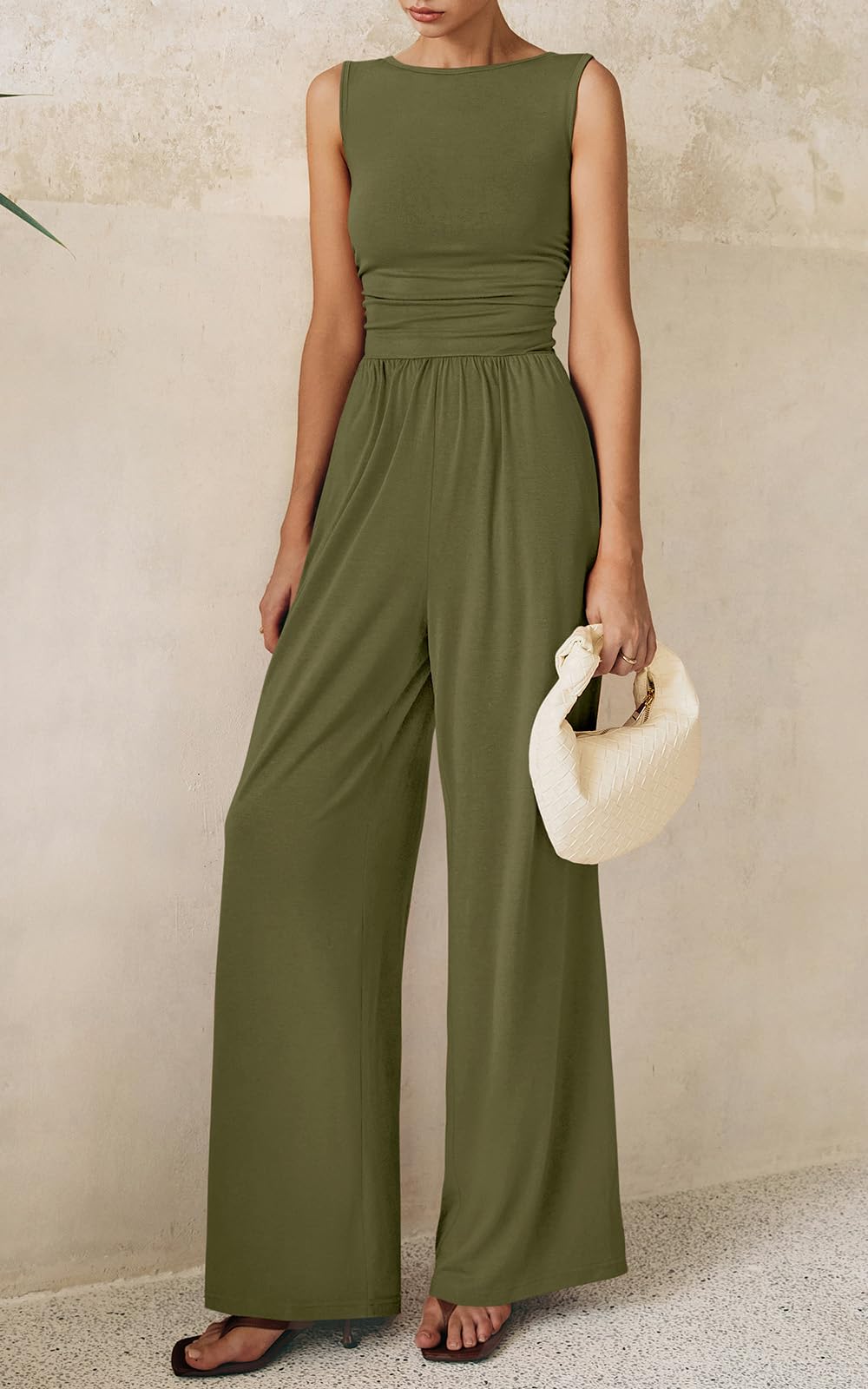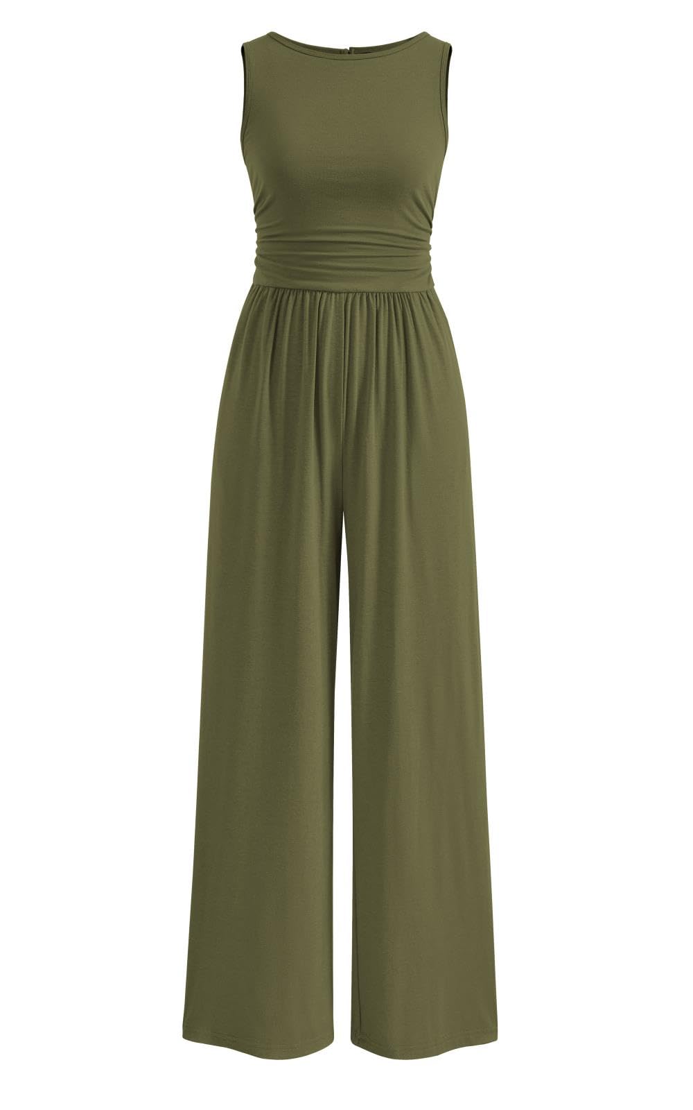 • Feature: Sleeveless jumpsuits for women, round neck, high waist, waist side ruched, loose fit jumpsuits rompers provide comfort and freedom of movement, back button closure makes it easy to put on and take off.Womens jumpsuits with pockets add both functionality and causal