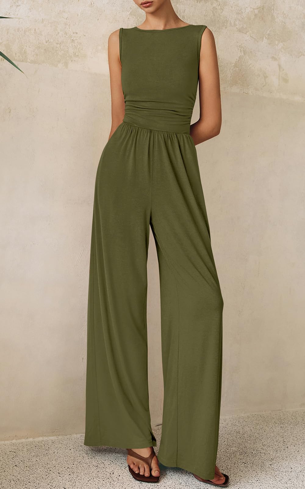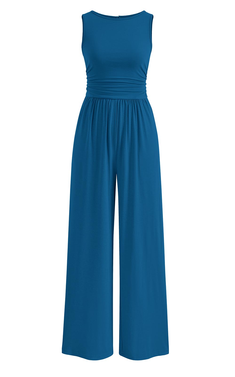 Dressy/Casual Jumpsuit – Sleeveless Crewneck One-Piece Wide-Leg Romper, Stylish Summer Vacation Outfit